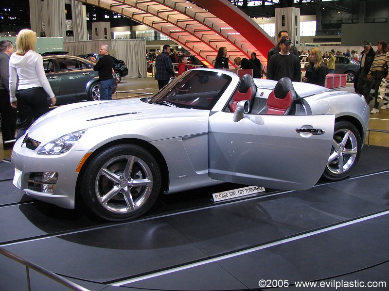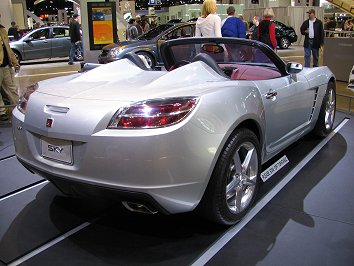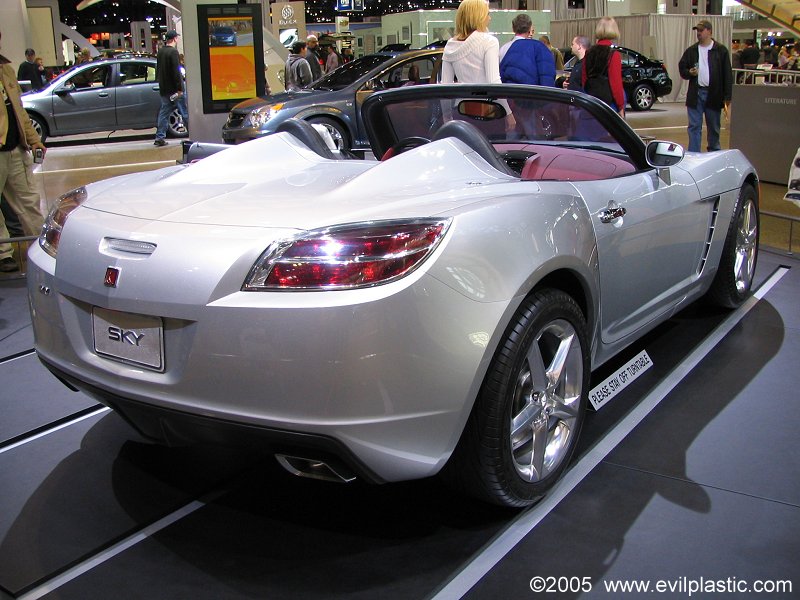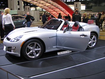 The Saturn Sky roadster's styling looks very different the design of all of Saturn's prior cars. If you took the emblems off of it, you'd never guess it is a Saturn. The two-tone interior was striking.