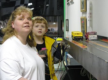 | Christena & son Adrian had their eyes on the lights. The cars can reach some impressive speeds on the dragstrip.